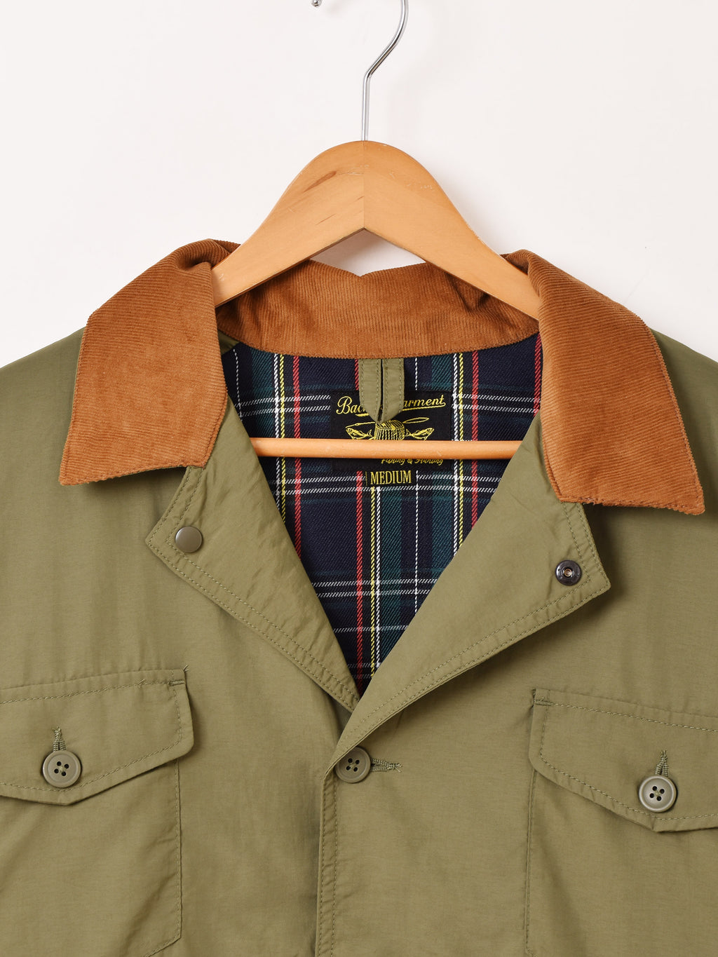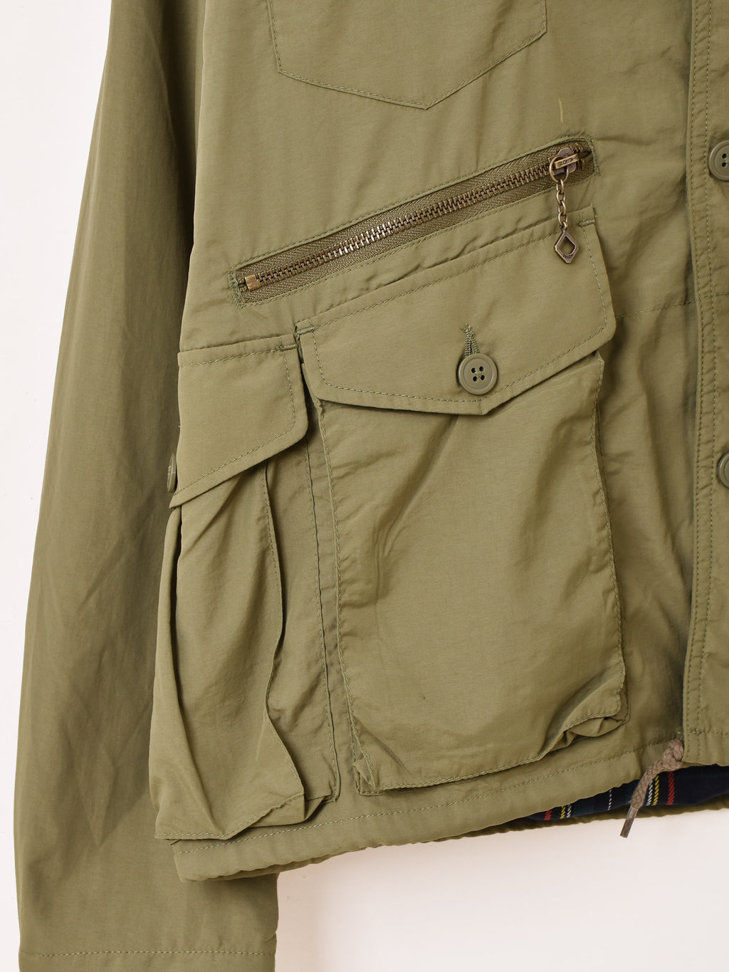 40年代頃に生産された、ハンティングとフィッシングの両用ジャケット、FISHUNTEXシリーズを再現した一着。絶妙な着丈やデザイン、ポケットなどの機能的なディテールなど、両者のいいとこ取りを盛り込んでいます。素材はナイロンを使用。タウンユースしやすいよう、現代的にアレンジしました。