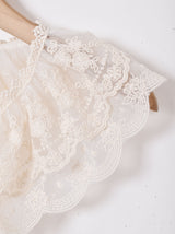花の刺繍が可愛らしいスカラップレースの付け襟。程よく透けて様々な服に合わせられます。