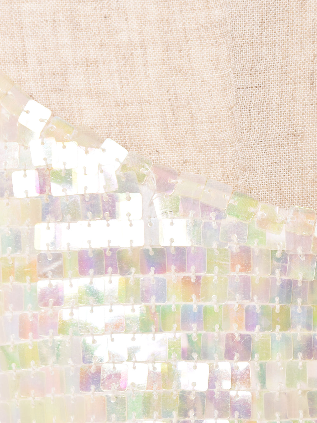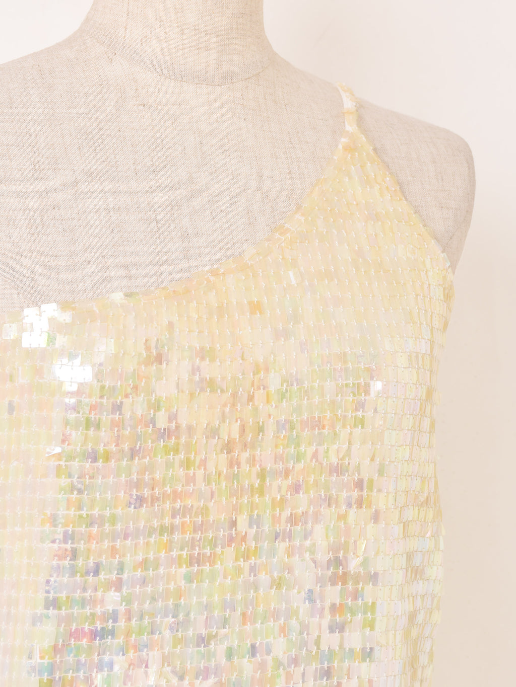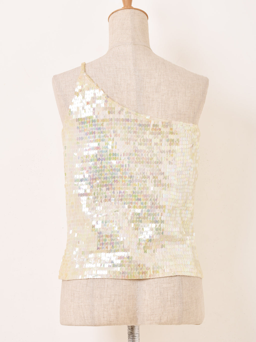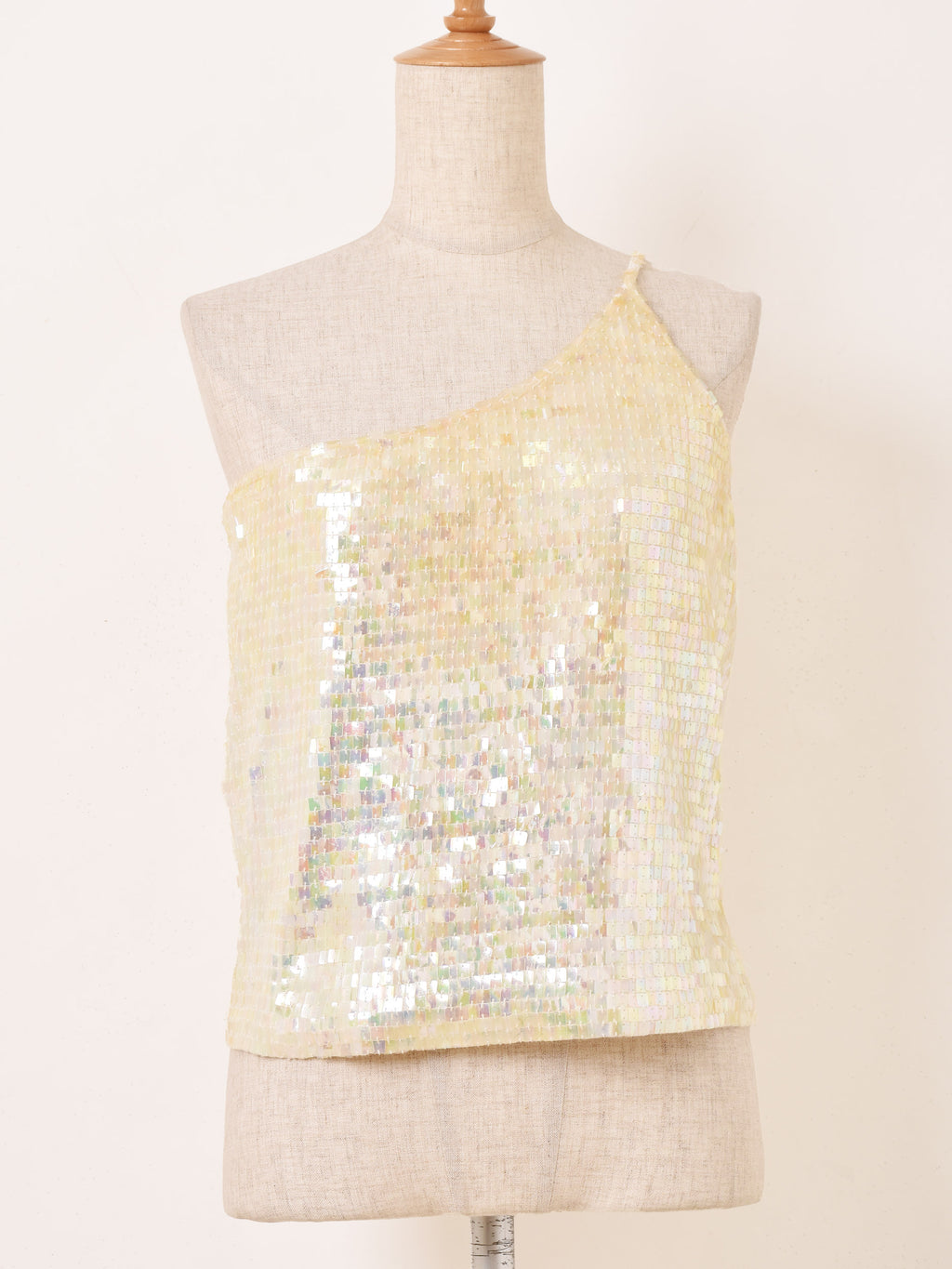 キラキラと光るスパンコール装飾が目を惹くトップス。インナーとしてもレイヤードアイテムとしても着回せる一着です。