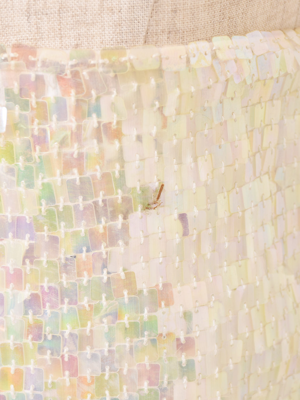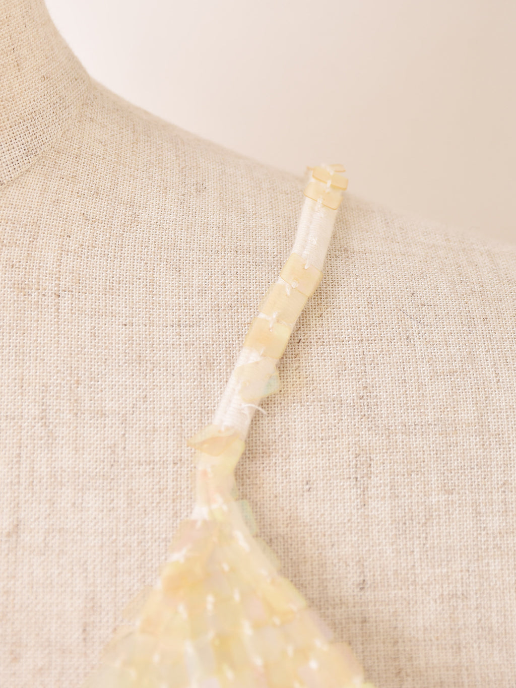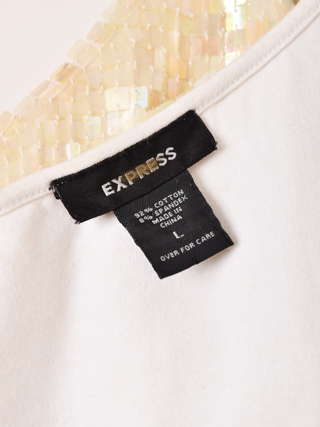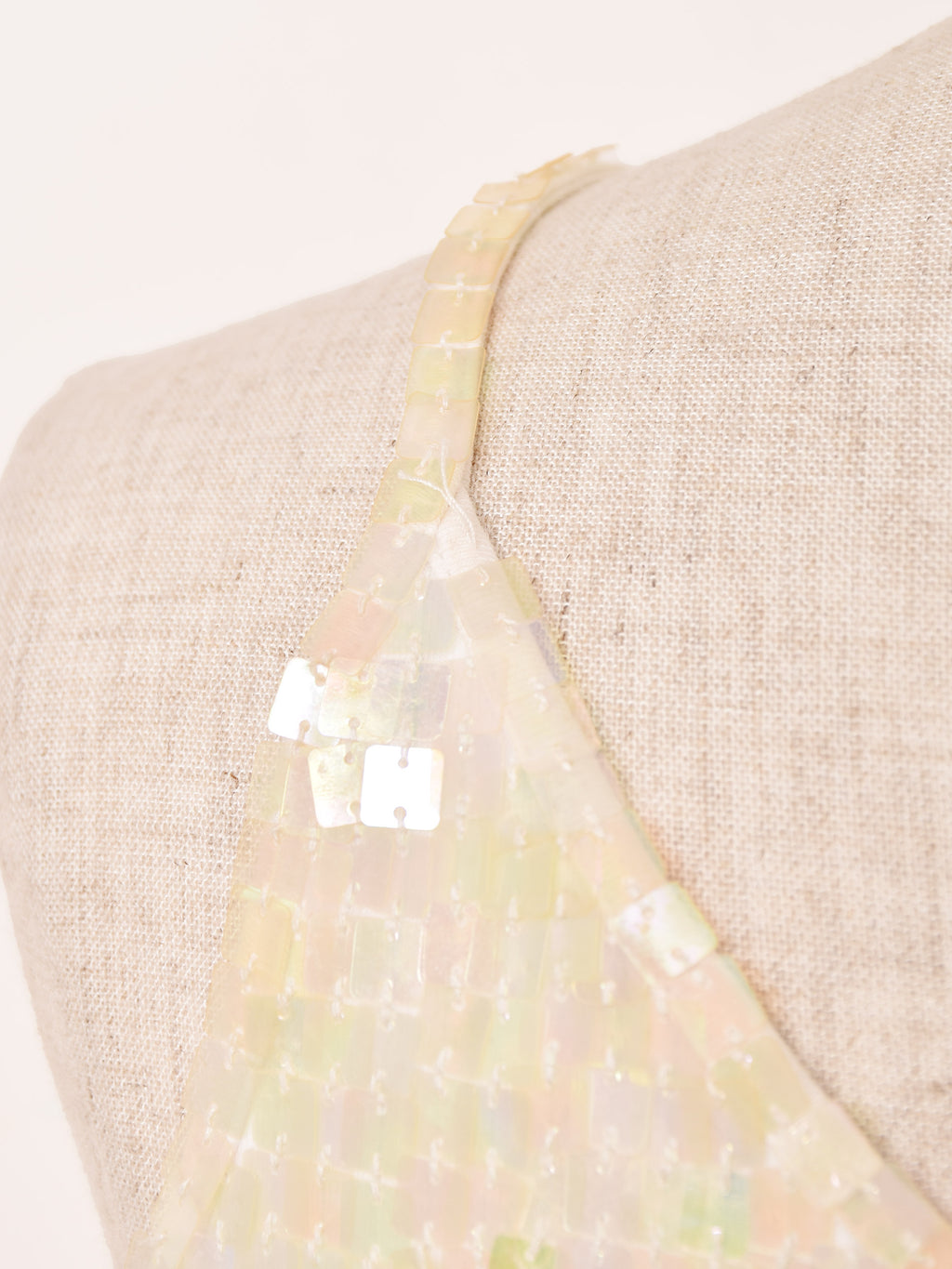 キラキラと光るスパンコール装飾が目を惹くトップス。インナーとしてもレイヤードアイテムとしても着回せる一着です。