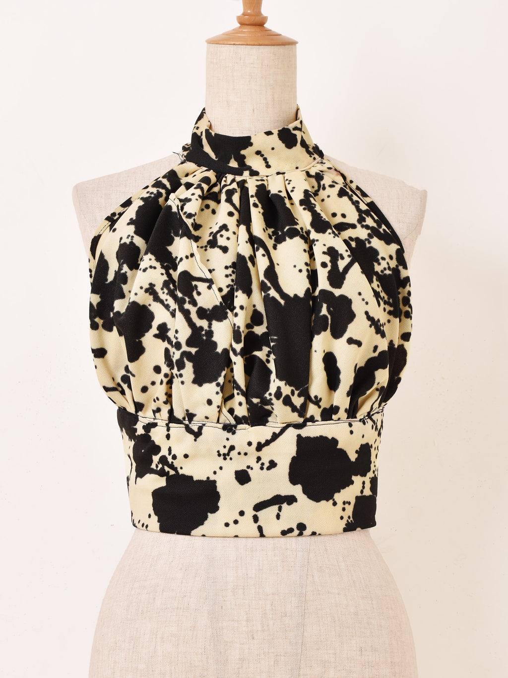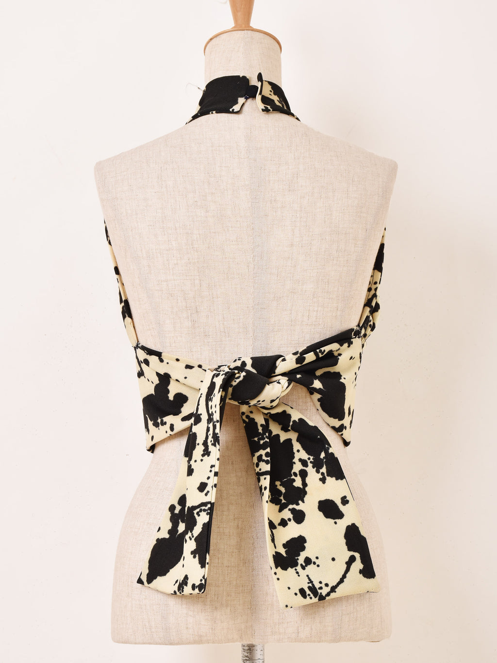 背中が大胆に開いてフェミニンな、ホルターネックタイプのビスチェ。レイヤードコーデのアクセントになる一着です。