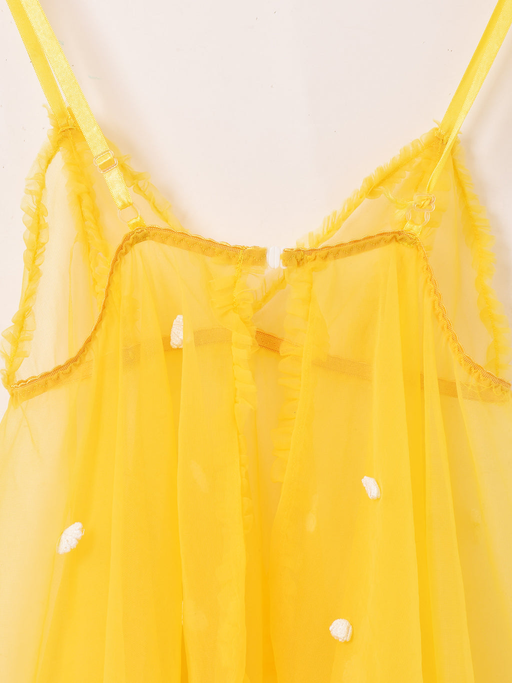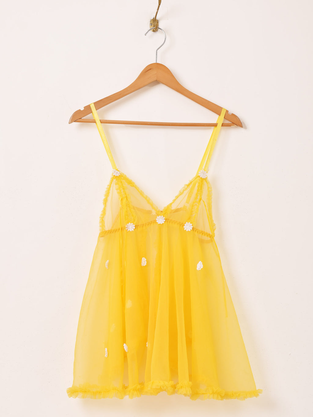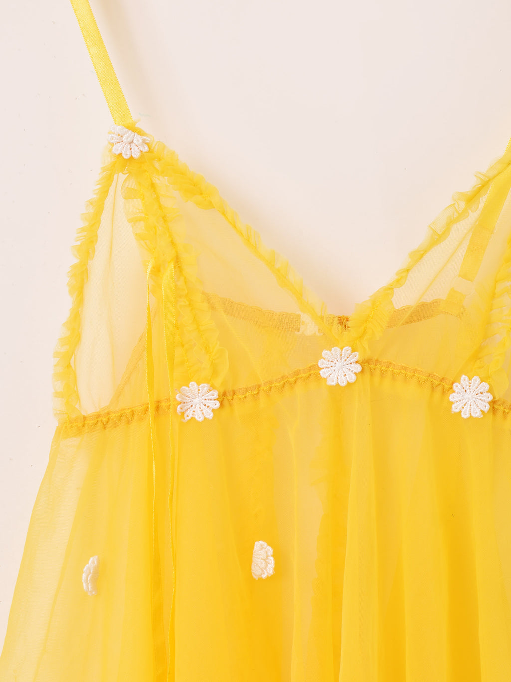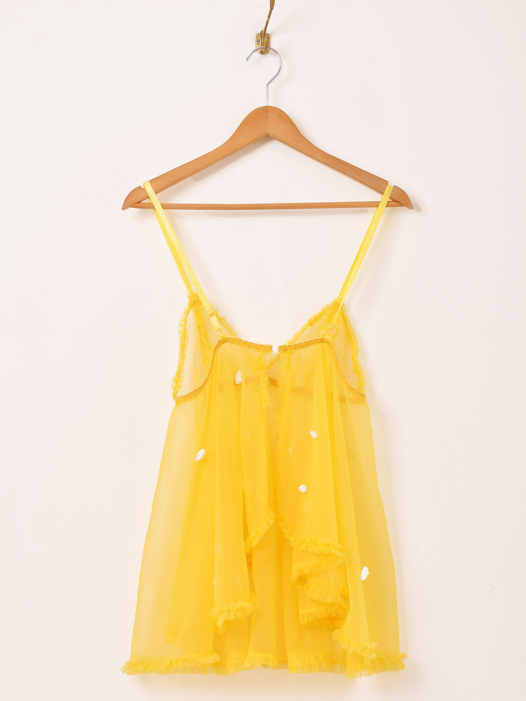 お花の刺繍をあしらったキャミソール。程よい透け感にふんわりと広がるペプラムシルエットが可愛い一着です。レイヤードコーデにおすすめ。