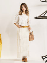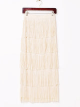 【5色展開】Meridian ティアード フリンジ ロングスカート