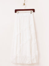 スパイラル状にフリルをあしらい、レース生地で仕立てたロングスカート。足元はレースの程よい透け感で、綺麗に見せてくれます。