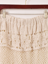 ざっくりと編まれたクロシェ編みが目を惹くロングスカート。裾が広がったティアードシルエットがポイント。膝下まで裏地が付いており、他のボトムスと組み合わせれば足元のレイヤードコーデが楽しめます。