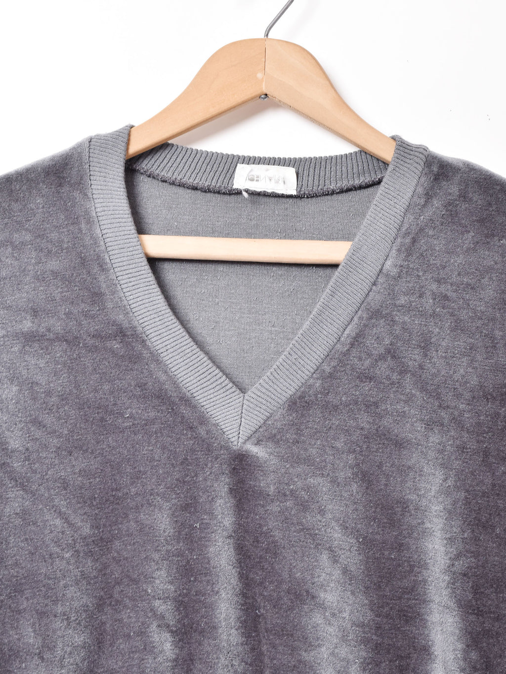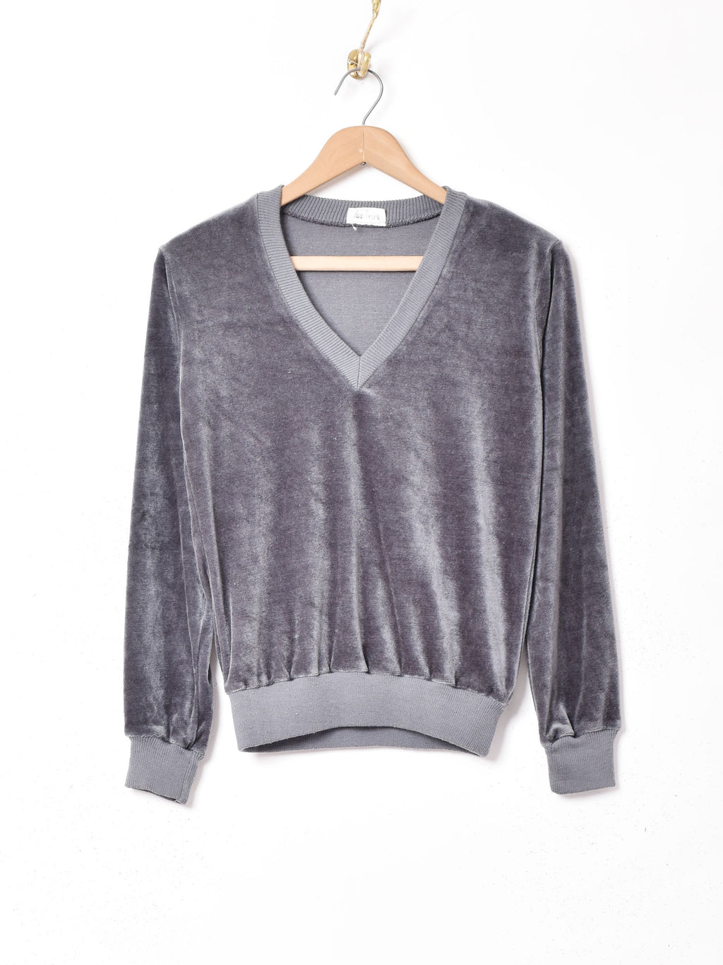 コンパクトなサイズと柔らかい生地感が魅力のベロアトップス。着回しの効くシンプルなデザインが◎。