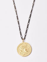 ローマ帝国のアンティーク金貨をモチーフにしたネックレス。古代ローマの政治家、カエサルの肖像がデザインされています。