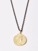 ローマ帝国のアンティーク金貨をモチーフにしたネックレス。古代ローマ皇帝、アウグストゥスの肖像がデザインされています。