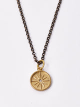 太陽モチーフの中央に、小さなラインストーンが埋め込まれたネックレス。