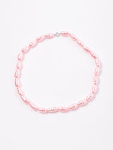 貝殻のようなピンク色のビーズが連なったネックレス。可愛らしくアクセントになる一点です。
