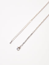 チェーンは合金製で、ロジウムメッキを施しており、50cm〜55cmでサイズ調整が可能です。