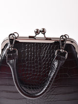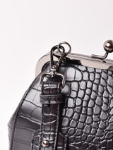 クロコダイル柄のエンボス加工が施された艶やかな質感が魅力のバッグ。ハンドバッグとショルダーバッグになる2wayタイプで、大きく開くがま口がデイリーに使いやすい一点です。
