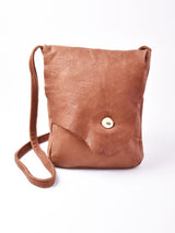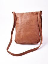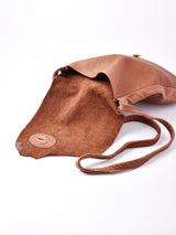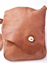 一枚皮で仕上げたショルダーバッグ。くたっとしたレザーの質感と、切りっぱなしのフラップ、ウッド調のボタンがかなり良い雰囲気。A4サイズがちょうど収まる、見た目以上に容量のあるバッグです。