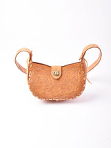 全体に施されたフラワーデザインと持ち手の星柄が目を惹くショルダーバック。小ぶりでしっかりしたかたい生地感です。