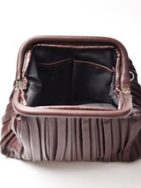 プリーツデザインがスタイリッシュなショルダーバッグ。口枠タイプでがばっと開き、サイズ感も丁度良い、デイリーに持てるバッグ。ストラップは取り外しが可能です。