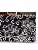 パーティーシーンに活躍しそうな小ぶりなチェーンバッグ。ベロア地にゴールドとシルバーの装飾がとても華やかです。