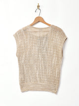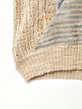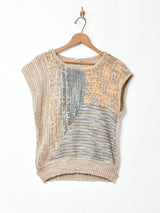 様々な種類の毛糸を組み合わせた、手の込んだデザインが魅力の一枚。一枚ではもちろん、ベストのようにレイヤードしても着ていただけます。ふんわり軽い生地感です。