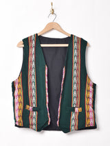 メキシカンな雰囲気満載の織りベスト。エスニックなスタイルにぴったりハマる一着。レイヤードしやすい柔らかい生地感です。