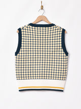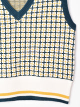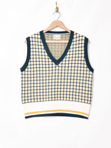 秀才ムード漂うチェック柄のニットベスト。ブラウスとの相性抜群の一品。柔らかく、肌触りのよいアクリルニットです。