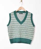 雰囲気のよい総柄が魅力のニットベスト。もっちりと柔らかなアクリルニットです。