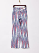 マリンテイストな爽やかな雰囲気漂うフレアパンツ。綺麗なフレアシルエットで、ハリのある程よい厚みのコットンポリエステル素材です。