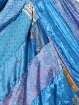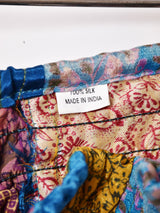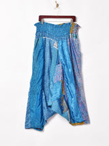 オリエンタルなムード漂う生地を組み合わせたパッチワークデザインのサルエルパンツ。ダボっとしたシルエットや光沢感のある生地感が存在感抜群。安心の裏地付きで、シルクらしい滑らかな質感の一枚です。