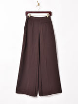 ビターな色味がよい雰囲気のワイドパンツ。ボリュームたっぷりのシルエットで存在感抜群。薄手のさらっとした生地感で、シーズンレスに着用できる一点です。