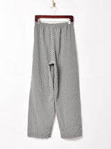 落ち着いたカラーリングとが総柄が雰囲気のよいイージーパンツ。さらっと涼し気なポリエステル素材です。