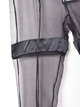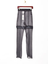 左右対象にデザインされたモードな雰囲気漂うシアーパンツ。かなり細身のテーパードシルエットで、ブラックから透ける肌がセクシー。おそらくポリエステル素材の柔らかな生地感で、裏地はありません。