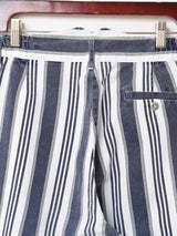 ネイビーとホワイトのストライプがさわやかなテーパードパンツ。しっかりとした生地感です。