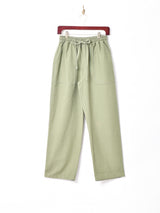 バックのフラップポケットがポイントのイージーパンツ。パナマ織りの様な横状に織りが入ったコットン生地を使用しています。ハリがありしっかりとしていますが涼し気な肌触りが魅力です。ややテーパードシルエットですっきりと履いていただけます。カジュアルに合わせやすい3色展開です。