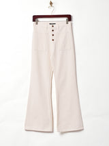 キレイなシルエットがポイントのフレアパンツ。少々伸縮性のあるツイル生地で、履き心地抜群です。