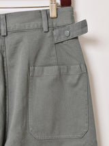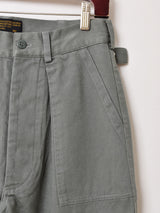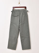 1950年代のUSAF(アメリカ空軍)メカニックパンツをサンプリングしたもの。セージグリーンのボディやダボっとしたシルエットはもちろん、アジャスターやポケット、タグなどディテールにもこだわった一本です。男女問わず着ていただける4サイズ展開でご用意しました。