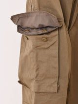 ヴィンテージアイテムとしても希少価値の高いフランス軍の名作、通称・後期型とも呼ばれるM-47カーゴパンツをサンプリングした一着です。M-47はヘリンボーンツイルを採用しており、当社でもその風合いを再現しました。実用性のあるマチ付きのサイドポケットが備わり、ダメージを受けやすい膝部分は布を二重に貼り合わせたダブルニー仕様に。