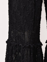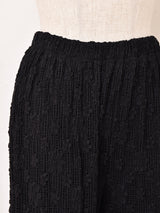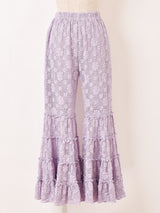 フラワーレースをたっぷりと使ったボリューミーなフリルパンツ。フレアシルエットに、裾は広がりのあるフリルになって華やかな動きが魅力的です。膝上辺りまで裏地が付いており、足元は透け感をお楽しみいただけます。生地には程よい伸縮性があります。