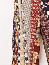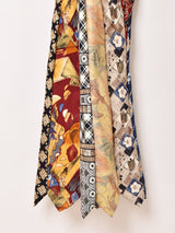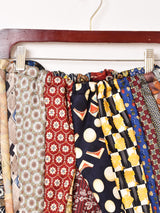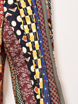 ネクタイを縫い合わせて作製されたフレアパンツ。