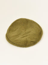 毛足短めのファーで、柔らかな雰囲気のベレー帽。肌触りよく、裏地付き。頭囲は調節可能です。
