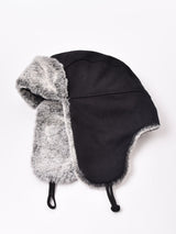 肌触りのよいフェイクファーが魅力のフライトキャップ。裏地はキルティングで、よりあたたかな一品です。