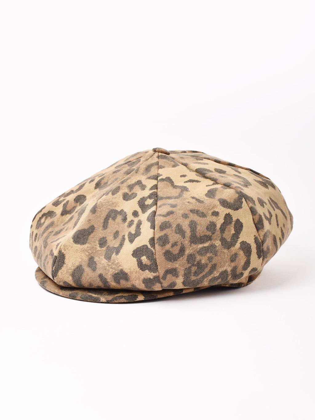 アクセントになるヒョウ柄デザインのキャスケット。コットン生地で、オールシーズン被れる一点です。