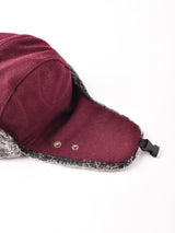 深みのあるカラーとウール混の生地感がマッチした、秋冬仕様のフライトキャップ。裏地はキルティングになっていて、防寒にも一役買うアイテムです。