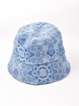 【2色展開】フラワーパターン デニム バケットハット ネイビー