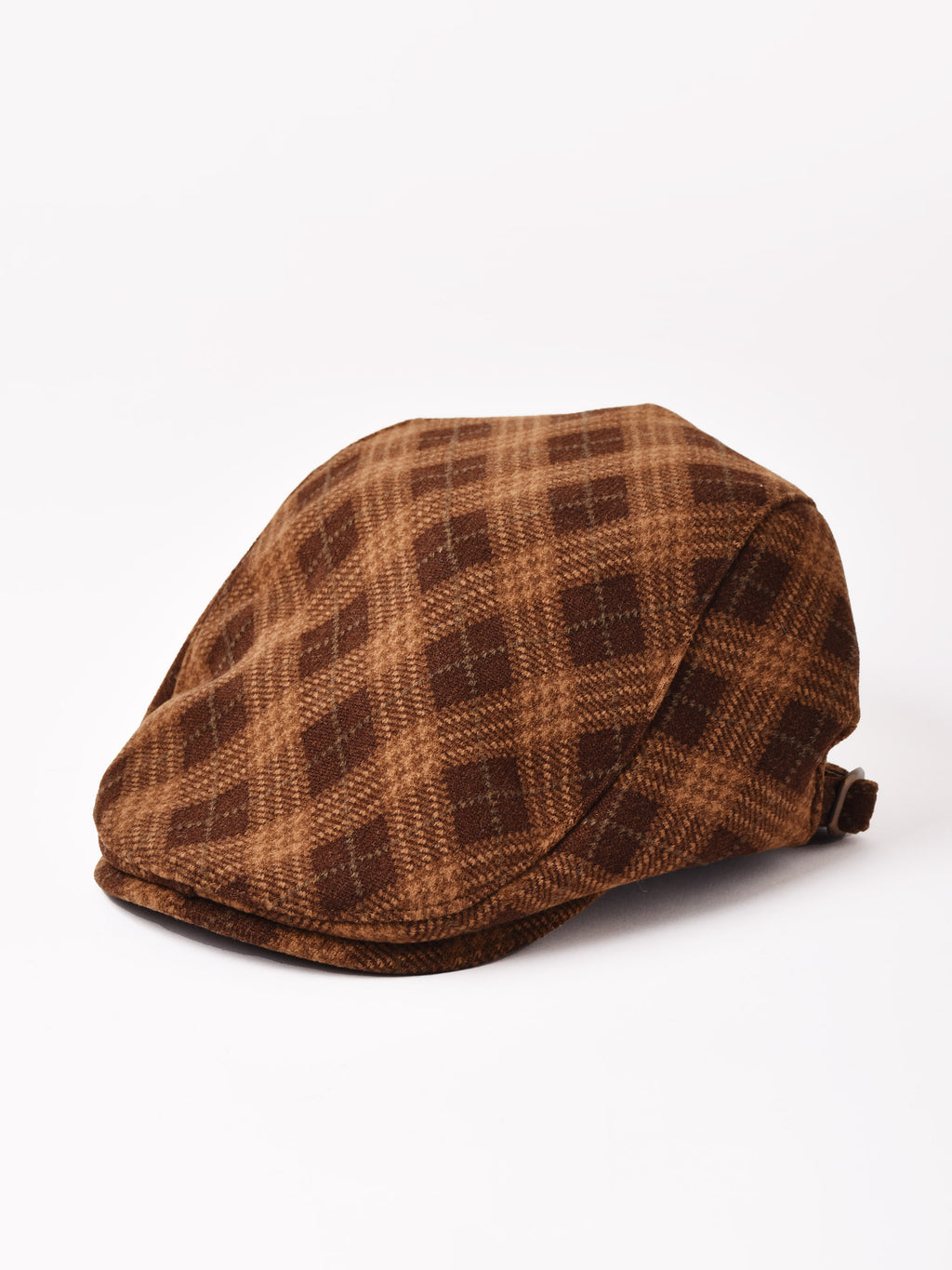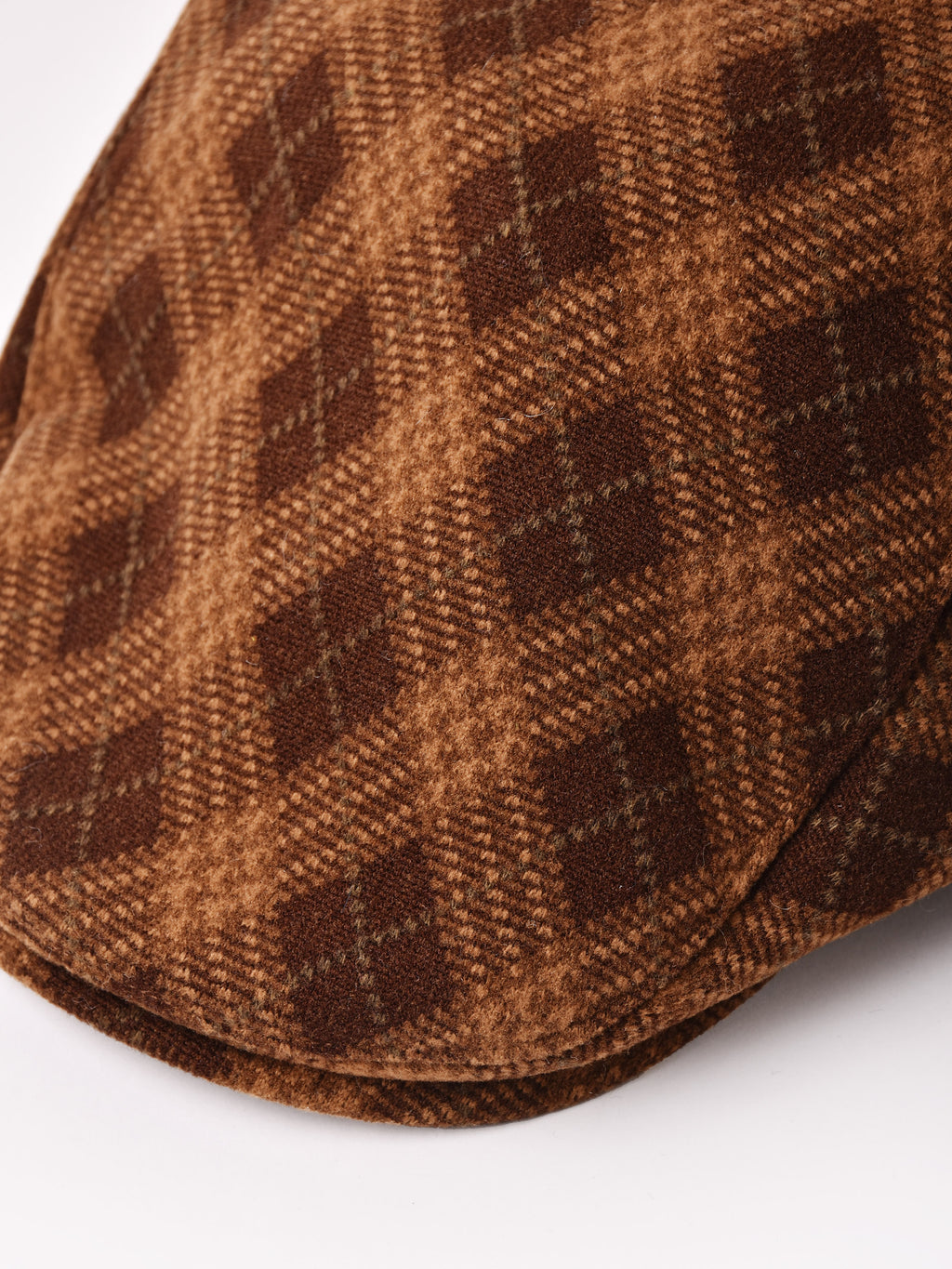 クラシカルなアーガイルチェックのハンチング帽。秋冬コーデに馴染みやすい一点です。