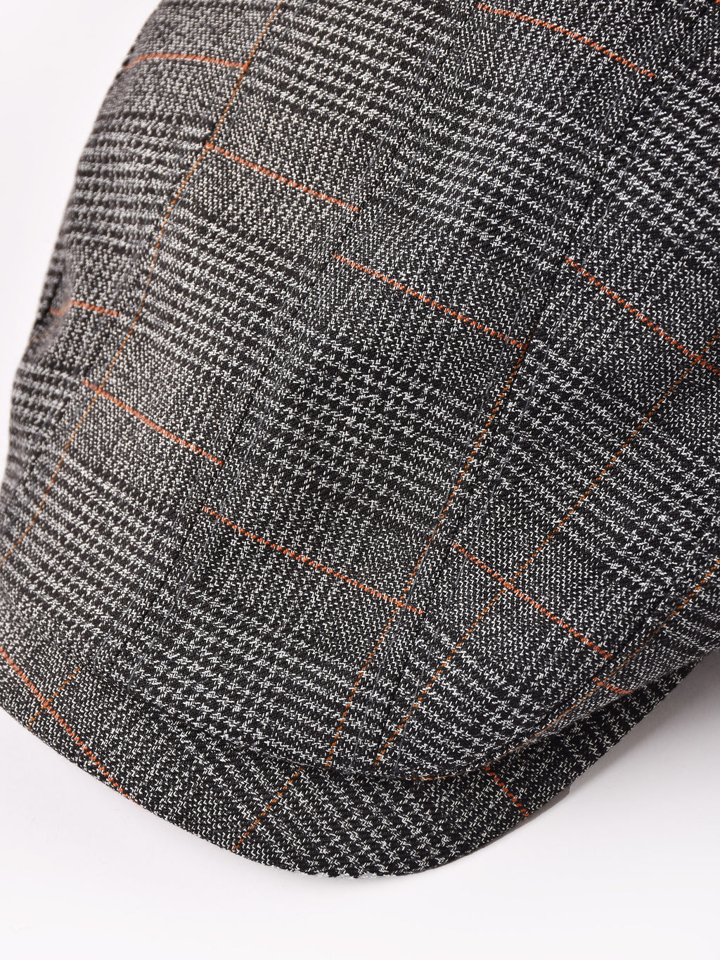 クラシカルなグレンチェックのハンチング帽。コーディネートを選ばない、使い勝手の良い一点です。