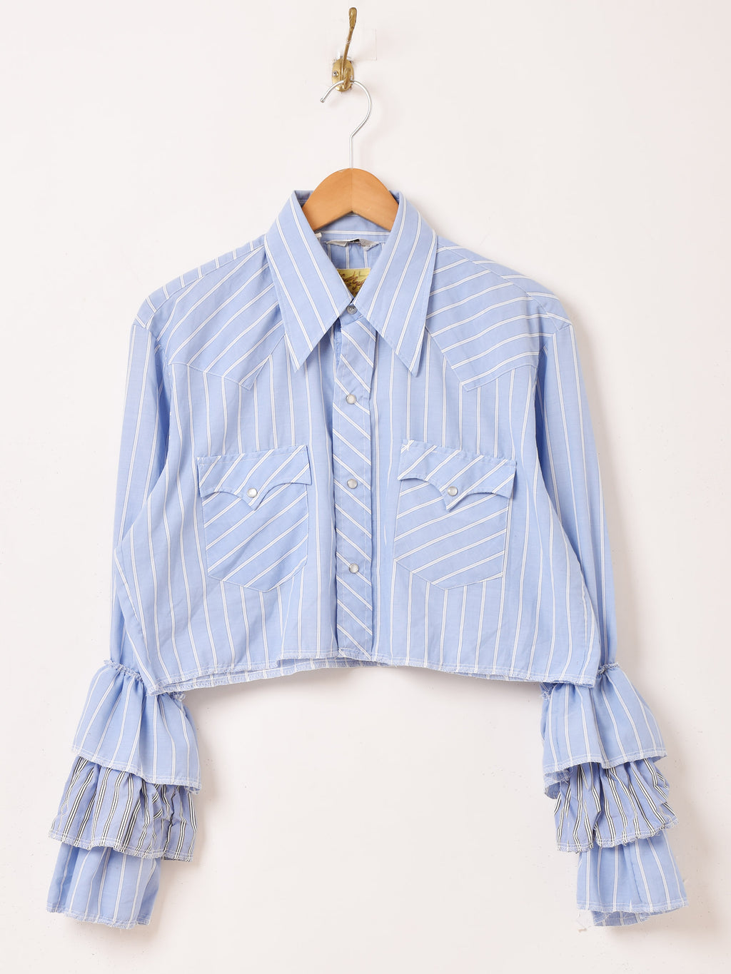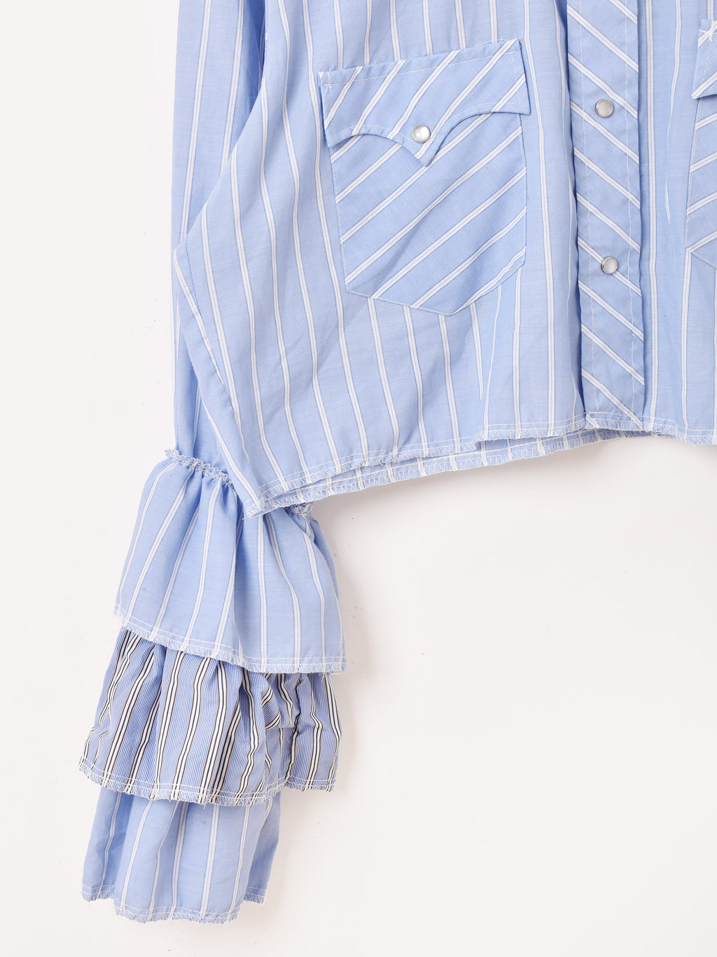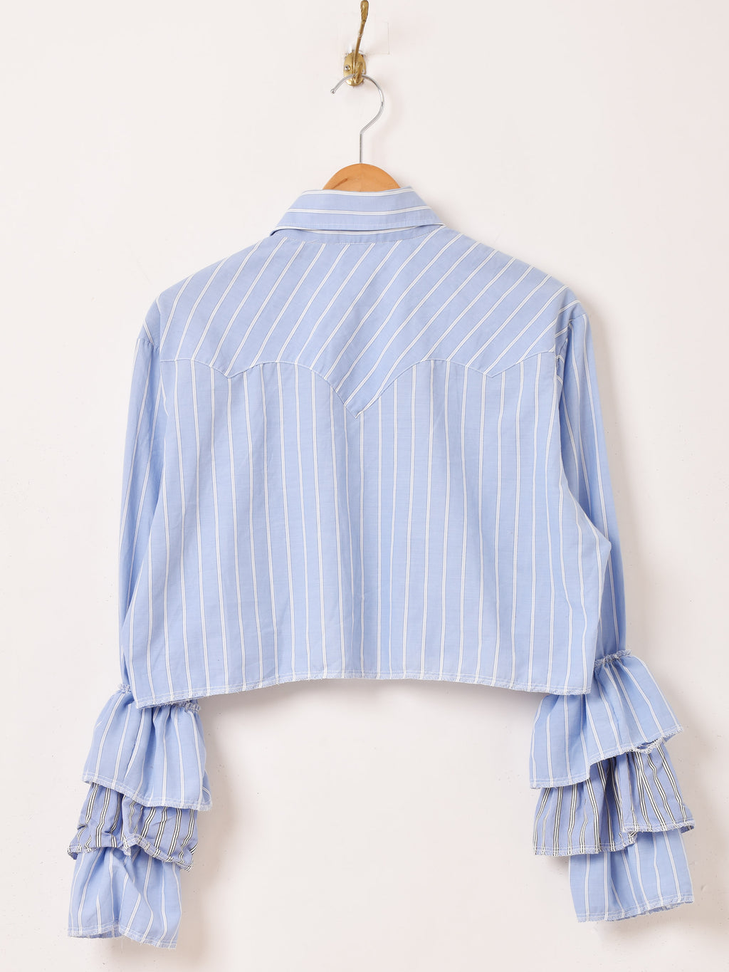 リメイク ラッフルスリーブ ストライプ 長袖シャツ