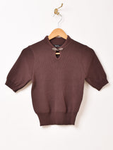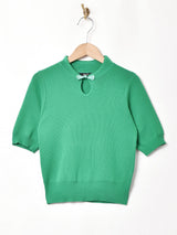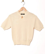 首元のチャイナボタンが魅力的な半袖セーター。身体にフィットするタイトなシルエットがポイント。パキっとした鮮やかなカラー展開が嬉しいアイテムです。