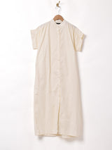 スタンドカラーですっきりとした印象のワンピース。薄手でハリのあるオールコットン生地です。