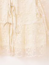 全体に施された花の刺繍や、フロントのリボン留めがガーリーな印象のチュールブラウス。裏地付きですが腕周りや裾は透け感があります。