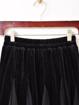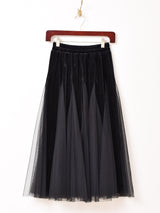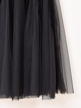 チュールとベロアの切り替えデザインが目を惹くミモレ丈のスカート。動くたびにゆらゆらと揺れるシルエットがフェミニンで優雅な印象を与えてくれる一着です。ポリエステル素材の裏地付きです。