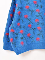 モヘアのようなふわっとした生地感の花柄セーター。ショート丈ながらも身幅はオーバーサイズなので、こなれ感のあるスタイルになります。