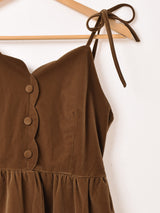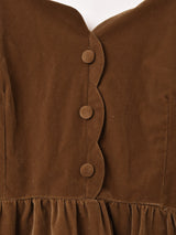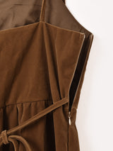 フロントのラインがV字のウェーブ型になっていて、デコルテを綺麗に見せてくれそうなキャミワンピ。肩紐は調節可能なのでお好みのサイズ感で着ていただけます。ベロアの上品な生地感もポイントです。
